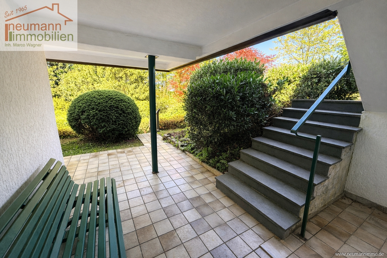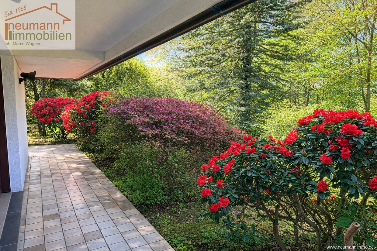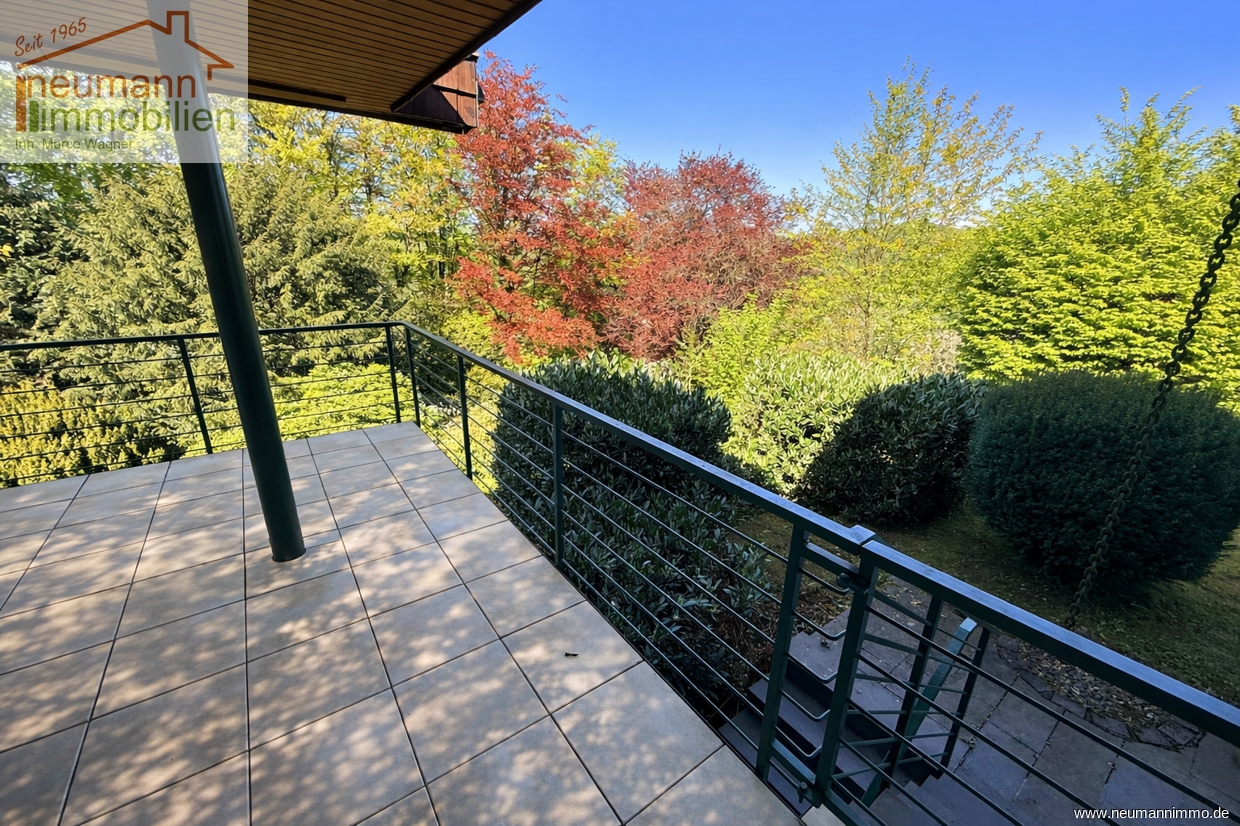 Das Grundstück ist bepflanzt und bietet einen guten Sichtschutz und damit Privatsphäre. Ein Gartenteich setzt einen charmanten Akzent. Wer den Garten punktuell öffnet und einzelne Büsche oder Bäume zurückschneidet, wird mit einem echten Highlight belohnt: einem traumhaften, weitläufigen Blick über das Wiedtal bis nach Waldbreitbach.