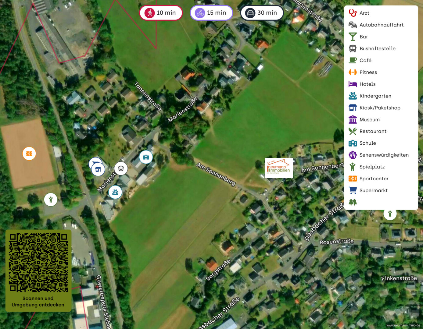 Die Lage am Ortsrand bietet eine ruhige und familienfreundliche Umgebung, während die Anbindung an den öffentlichen Nahverkehr durch eine Bushaltestelle in nur 270m Entfernung gewährleistet ist. Die Autobahnauffahrt in ca. 1265m Entfernung ermöglicht eine schnelle Verbindung zum Straßennetz, was besonders für Pendler von Vorteil ist.