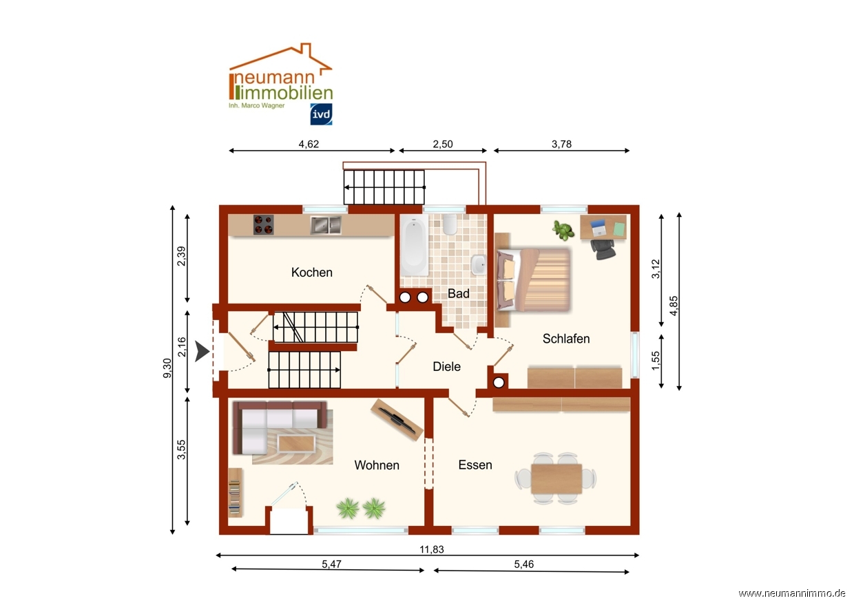 DG: 488 €/Monat (54,23 m² x 9,00 €)